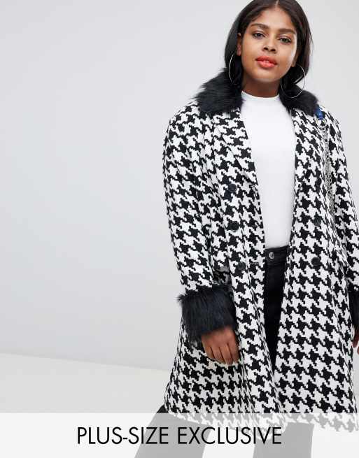 Unique21 Hero Plus Oversized Car Coat In Houndstooth With Faux Fur Collar And Cuffs Asos