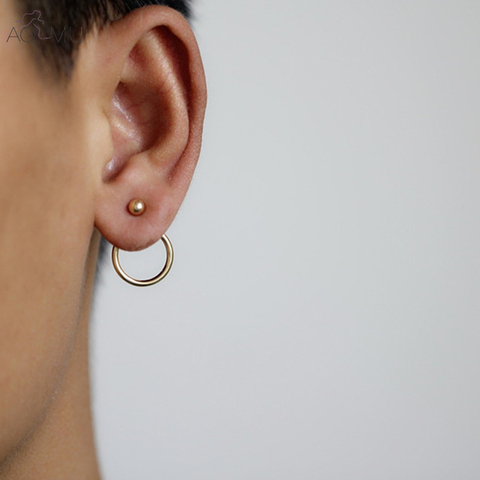 Buy Online Minimalist Golden Beads Circle Metal Stud Earrings Double Side Ear Jacket Best Gift For Women Girl Fashion Jewelry Brinco Wholes Alitools