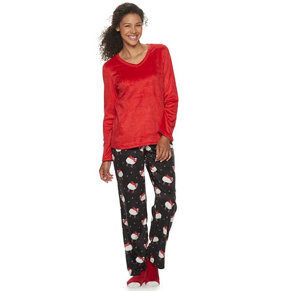 Women S Croft Barrow 3 Piece Minky Fleece Pajama Set With Sock
